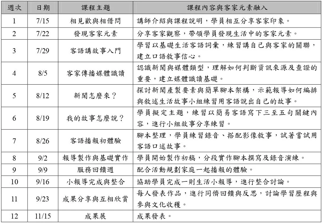 我們重視的不只是語言學習,更是讓每位學員理解周遭的大小事情都值得被記錄下來,也值得向外推廣。課堂中學員將練習用基礎客語描述故事場景、社區事件或成長記憶,並結合影像或聲音,轉化為簡易報導內容,落實媒體近用與文化參與。這不只是語言課,更是文化傳承的行動課。
