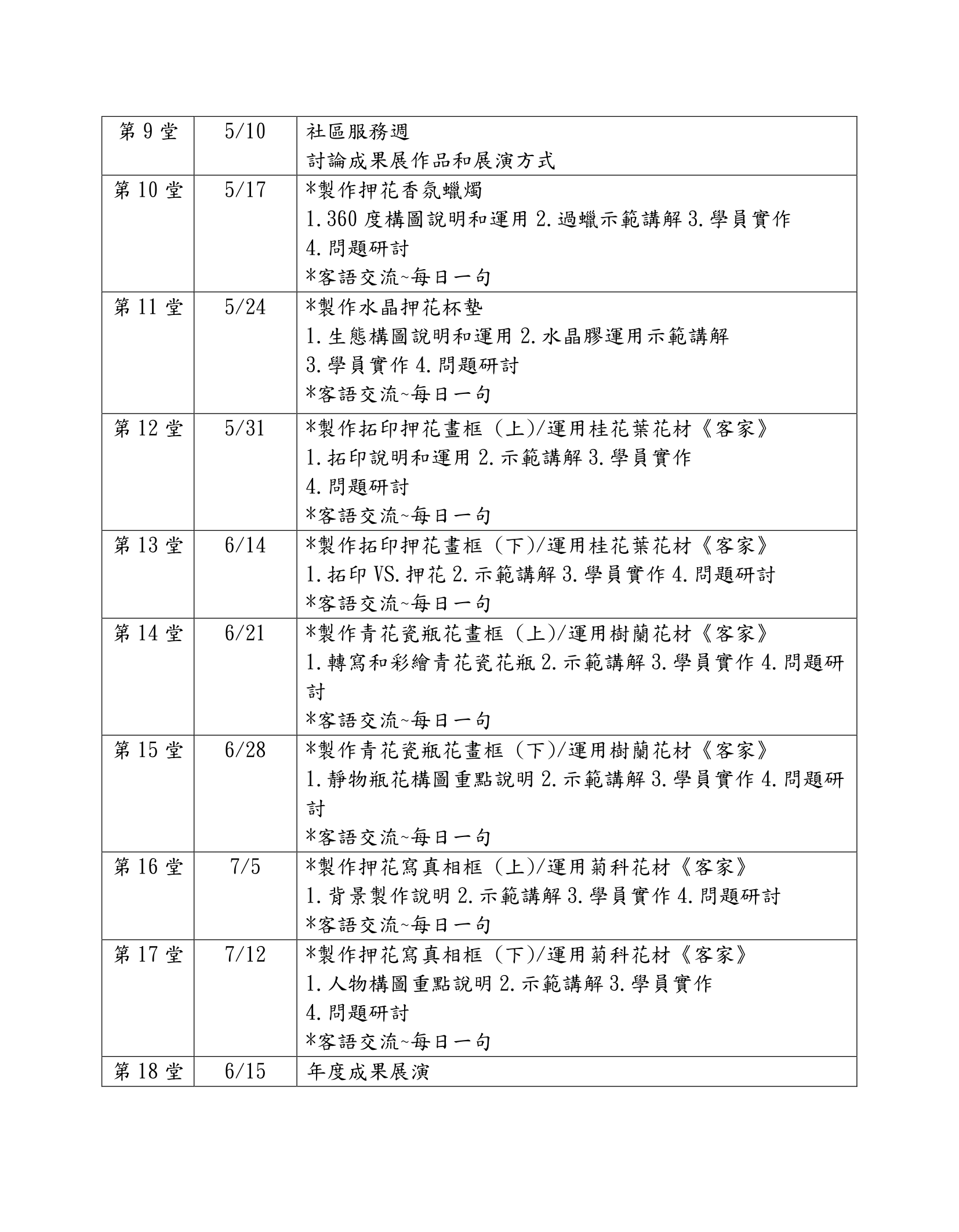 台北市中山女高、東門國小、河堤國小、金華國小成長課程 押花指導老師