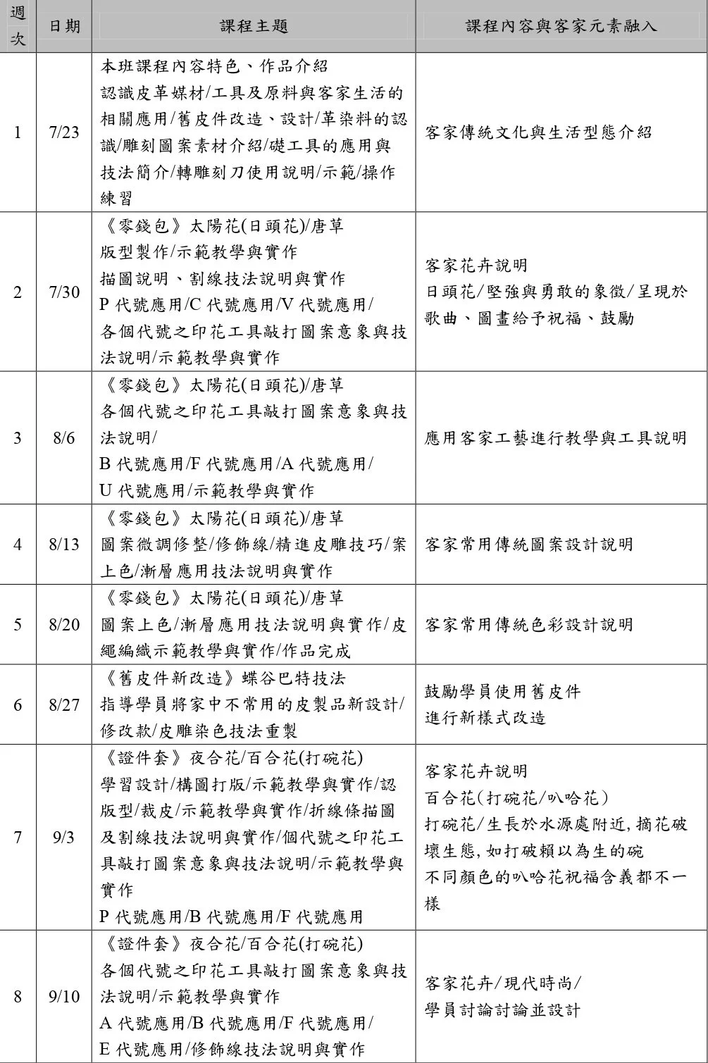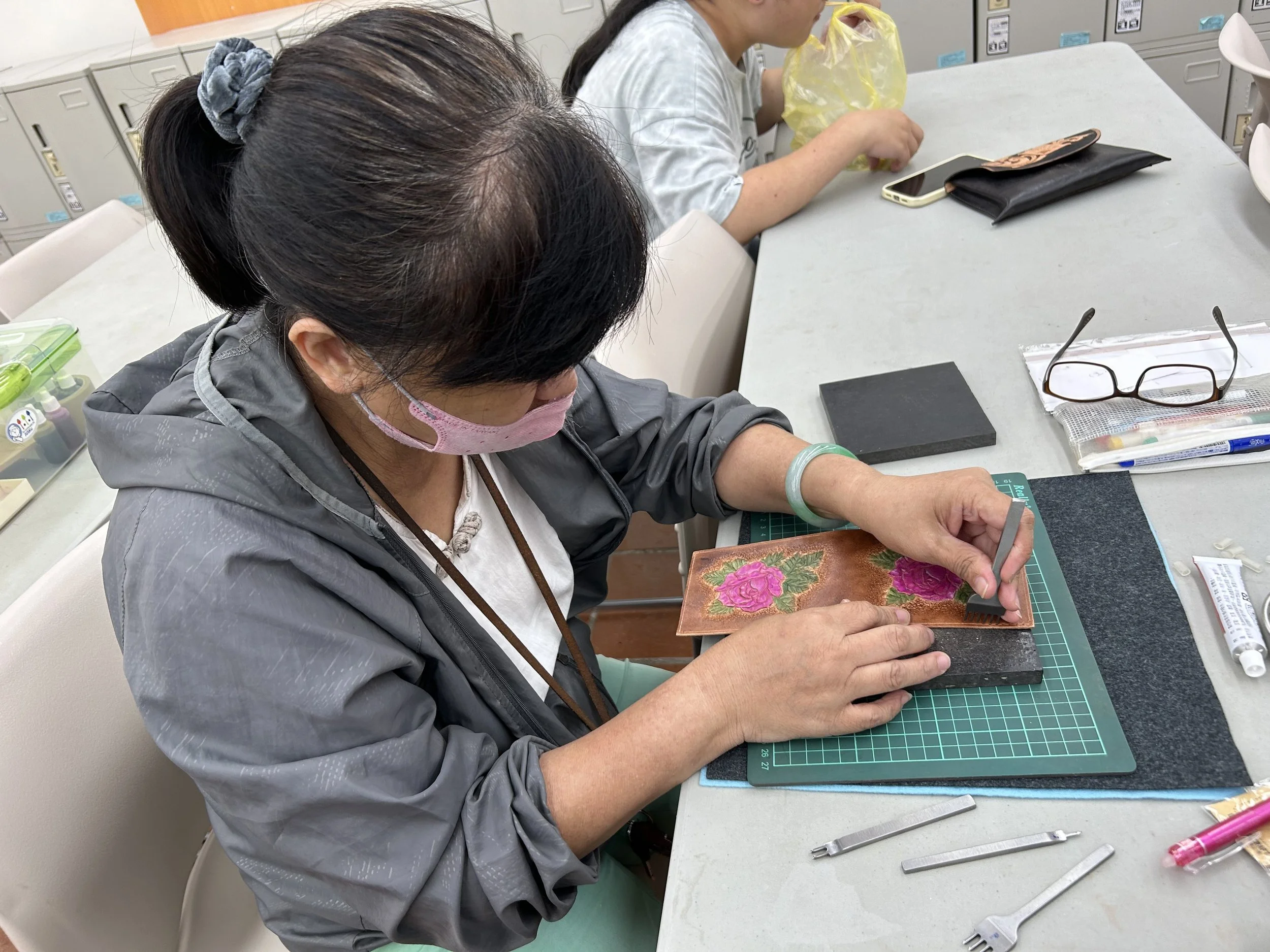 本班課程以花卉-唐草雕刻彩繪為主,融入客家文化多元風格且時尚之皮雕工藝的作品更具特色。