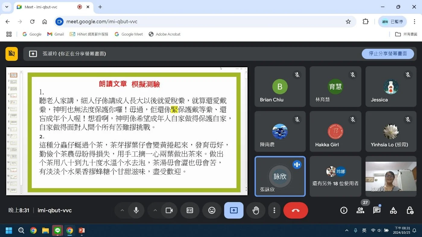2.至今連續十一年開設客語初級和中高級認證班,透過聲韻調、語句、句組、情境對話等互動練習,掌握基本的客語聽說讀寫能力,並依情境設計練習用客語交談溝通。