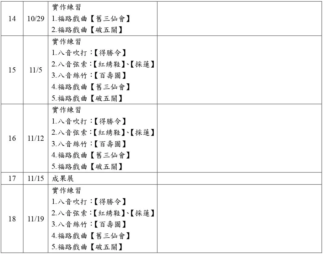 教授專長科目:客家八音、亂彈戲曲、採茶戲。
